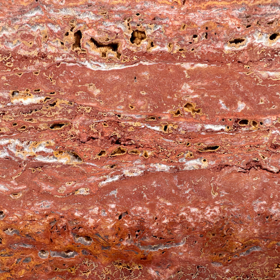 - Descrizione: Rosso Soraya è un marmo dalla forte personalità, con toni intensi che spaziano dal rosso mattone al bordeaux, attraversati da venature chiare che ne esaltano la profondità. È una pietra che trasmette energia, prestigio e unicità, perfetta per ambienti che vogliono distinguersi con eleganza.